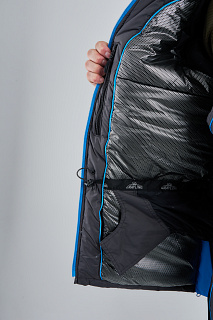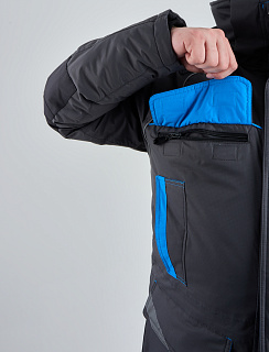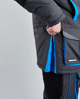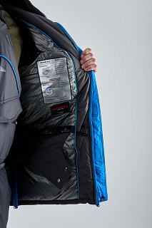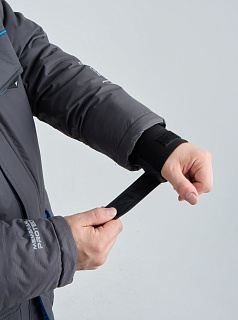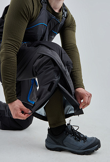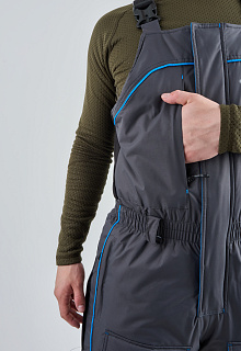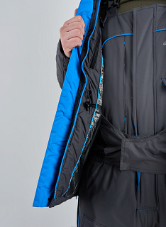 Важным аспектом этого костюма является дополнительная защита от ветра и снега. Ветрозащитная юбка на куртке препятствует попаданию холода внутрь, а снегозащитные манжеты на штанах полукомбинезона надежно закрывают доступ снега к коже.