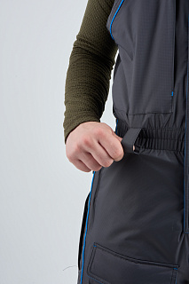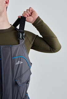 Полукомбинезон оснащен регулируемыми лямками, которые гарантируют удобную посадку, а эластичные боковые вставки обеспечивают свободу движений, позволяя Вам легко наклоняться или приседать во время рыбалки. Регулируемые неопреновые манжеты на рукавах куртки предотвращают продувание и обеспечивают дополнительный комфорт.